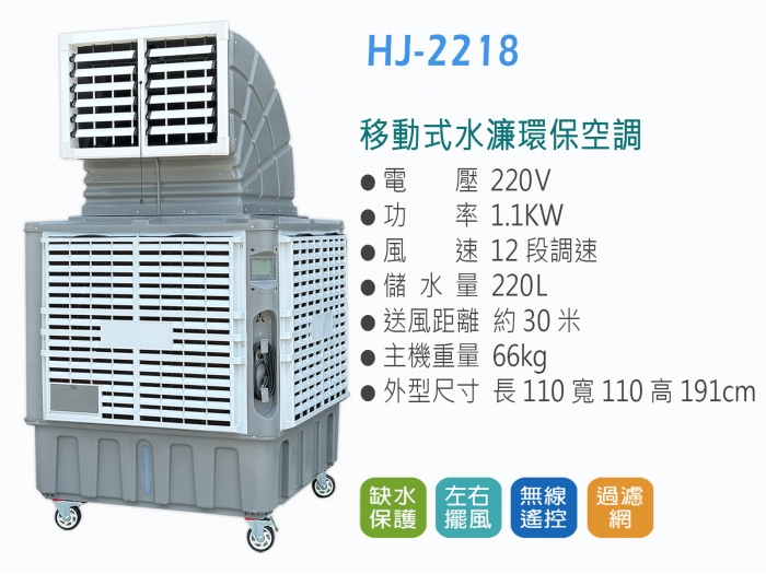 220公升超大儲水量、四面進風、吹風距離更遠、無線遙控、移動方便、不噴水、不噴霧