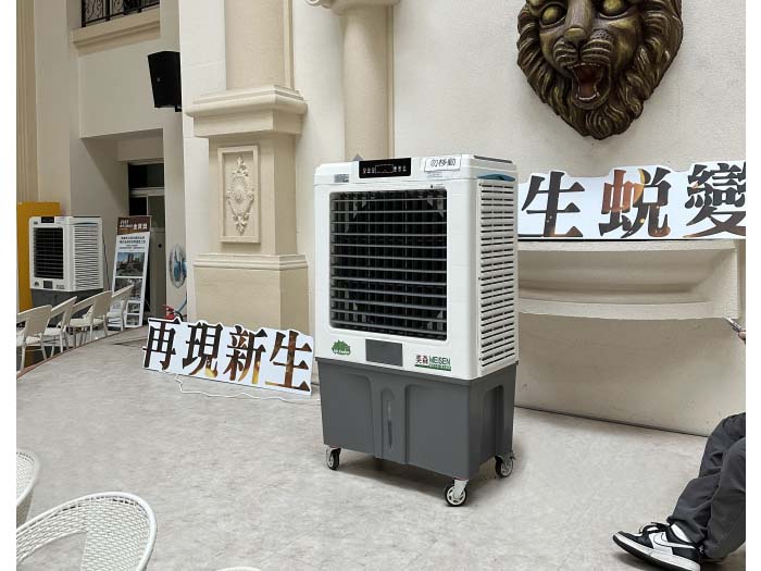 水冷扇 MS-180 電 壓 110V 功 率 640W 風速控制 3段調速 風葉直徑 24吋(60cm) 出風百葉 電動搖擺 送風距離 約18米 儲 水 量 120公升 主機重量 45公斤 外型尺寸 高150*寬92*深55cm 負離子(選配)